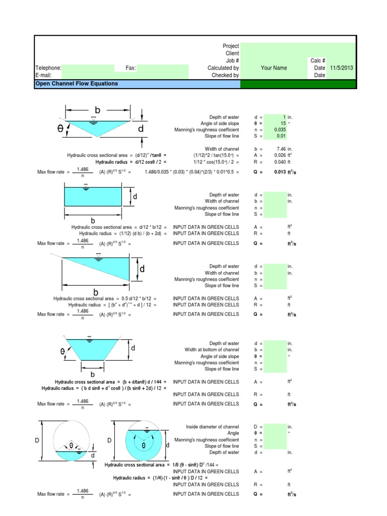 Excel Templates For Manning Equation Uniform Open Channel Flow Calculations Bright Hub Engineering